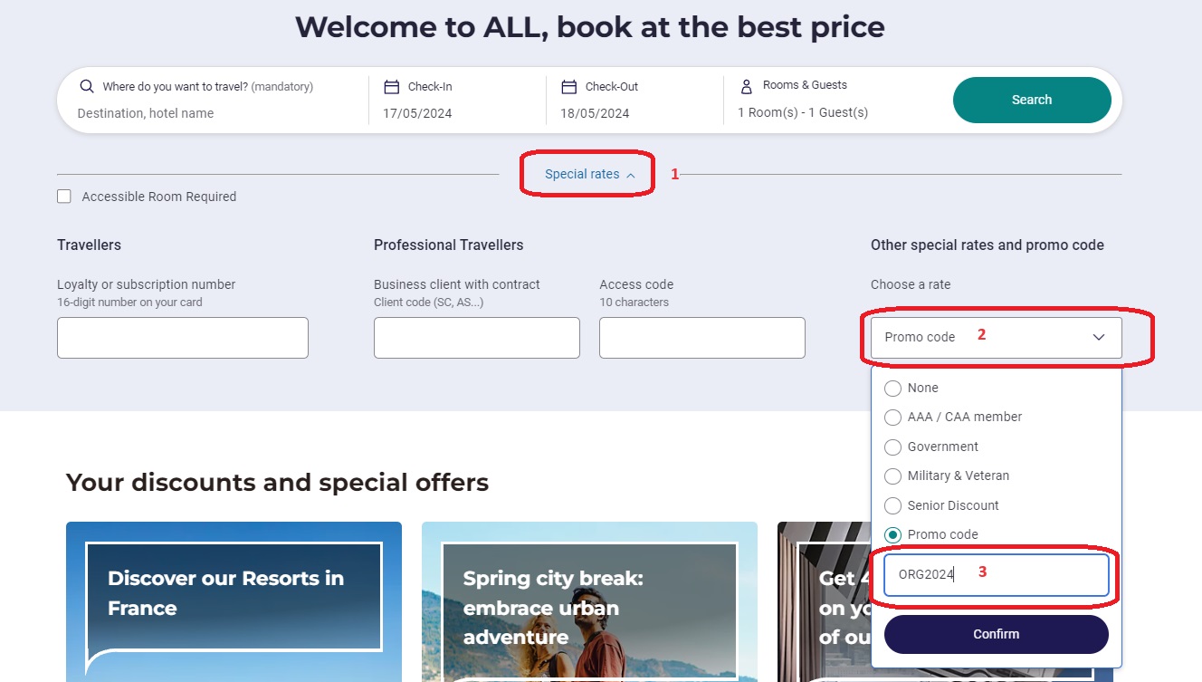 Follow these steps to make a booking at the rates discounted for OrgHort2024 Participants: